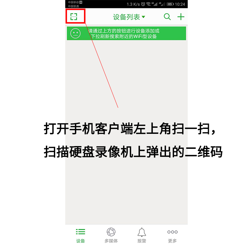 3.打開“seetong”客戶端左上角的掃一掃,掃描硬盤錄像機(jī)彈出的臨時二維碼;