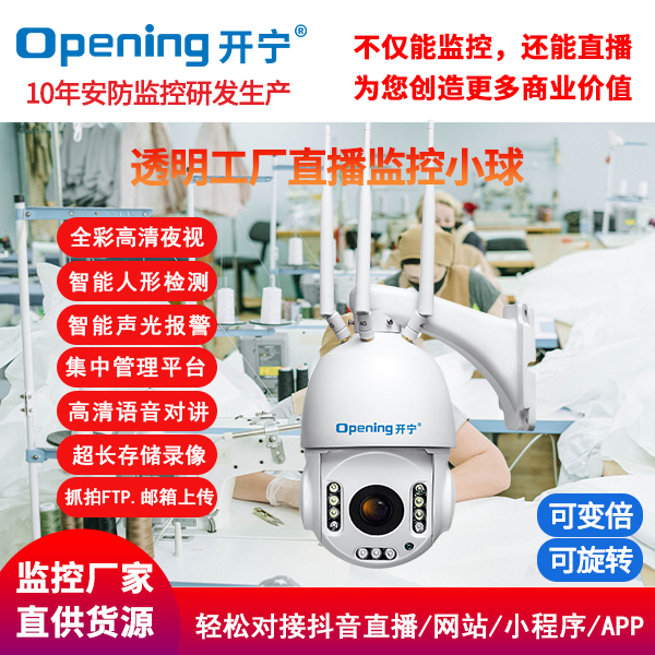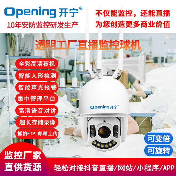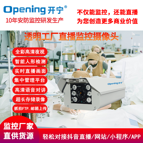 開寧視訊結(jié)合自身研發(fā)技術(shù)優(yōu)勢(shì),推出了開寧直播監(jiān)控?cái)z像頭系列產(chǎn)品,為更多的傳統(tǒng)工廠打造“透明工廠”,提高知名度,帶來更多的客戶,創(chuàng)造更多的商業(yè)價(jià)值!