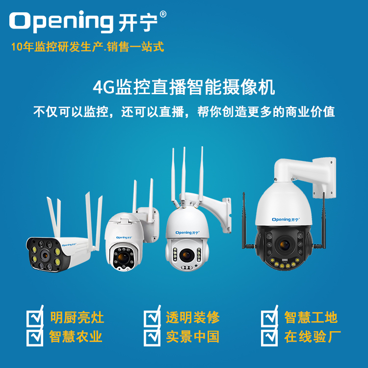 要想實(shí)現(xiàn)“慢直播”,只需要一臺(tái)電腦和一臺(tái)開寧監(jiān)控直播攝像機(jī),慢直播設(shè)備大多長時(shí)間安裝在戶外進(jìn)行固定角度直播,那么該設(shè)備就需要能在戶外安裝,并且使用4G/5G網(wǎng)絡(luò)等方式進(jìn)行傳輸視頻,設(shè)備還要具備防水能力!開寧“慢直播”監(jiān)控直播攝像機(jī)設(shè)備可根據(jù)直播場景選購不同的設(shè)備,以下是開寧監(jiān)控直播攝像機(jī)系列產(chǎn)品,適用于各大慢直播應(yīng)用場景!