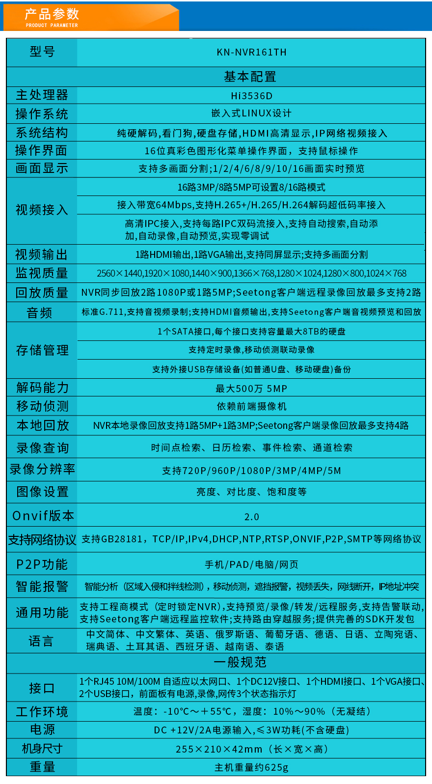 - 16路1盤位網(wǎng)絡(luò)硬盤錄像機(jī) KN-NVR161TH