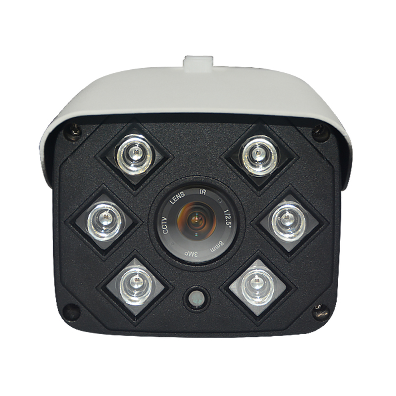 ★6顆晶元LED紅外陣列燈,紅外20-70米,300萬高清定焦鏡頭(4mm/6mm/8mm可選),IP66防水全金屬外觀,DC12V供電。