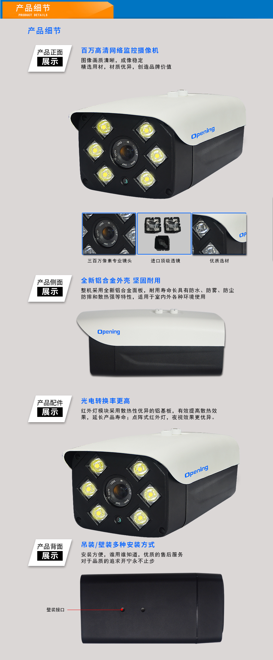 ★超長存儲、960P/1080P/1944P(130萬/200萬/500萬)、智能高清、全網(wǎng)通、低碼流、低照度、低功耗、H.264+/H.265+雙碼流、防靜電、防浪涌、過壓保護(hù)、移動偵測報警。