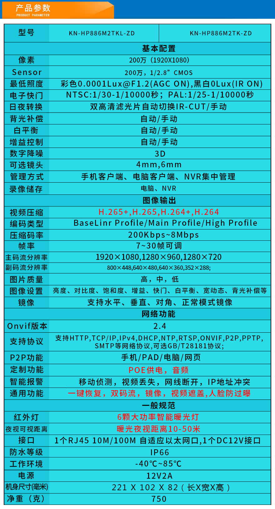 - 智能黑光全彩網(wǎng)絡攝像機 KN-HP886M2TK-ZD