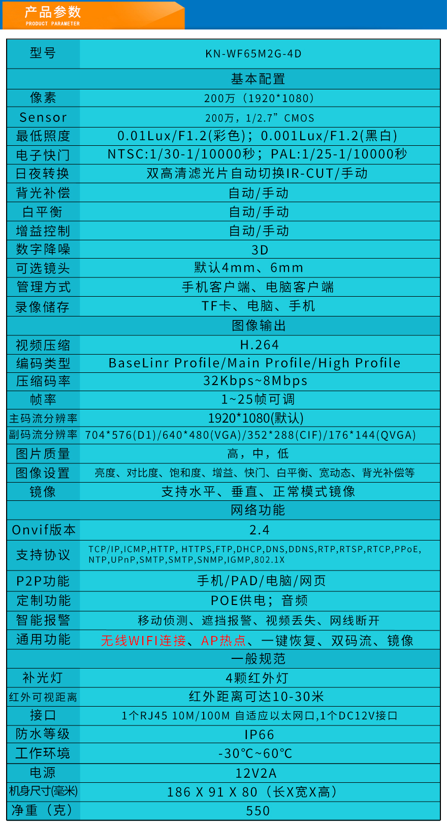 - 室外無(wú)線(xiàn)防水網(wǎng)絡(luò)攝像機(jī) KN-WF65M2-4D