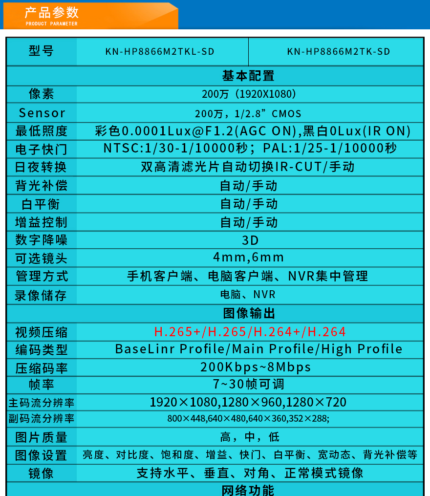 - 智能聲光報警高清攝像機 KN-HP8866M2TK-SD
