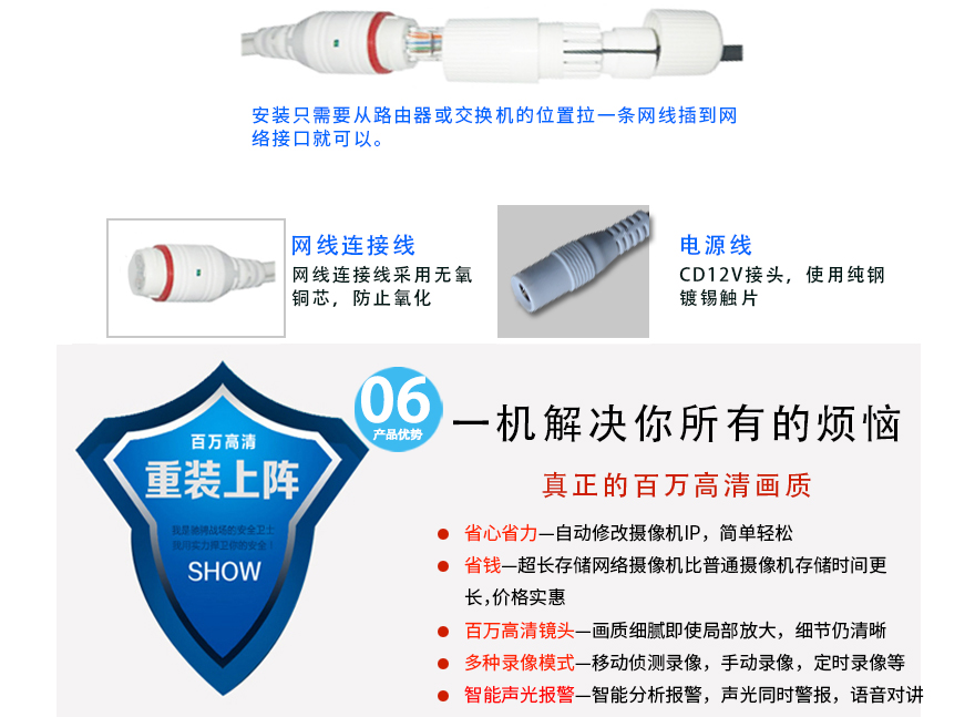 - ★這是一款智能聲光報警網(wǎng)絡(luò)高清攝像機,數(shù)字高清、不再害怕圖像模糊。