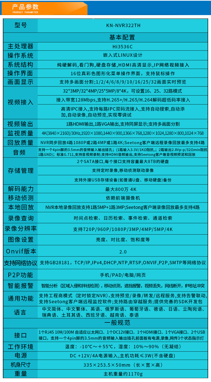 - 32路2盤位網(wǎng)絡(luò)硬盤錄像機(jī) KN-HP322TH