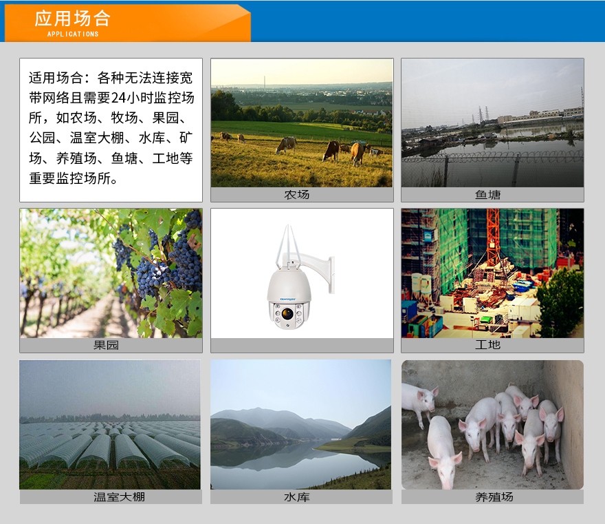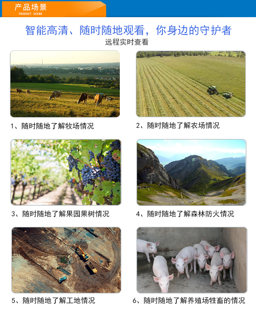 2、內置智能4G模塊;適用場所:養(yǎng)殖/種植/工地/公園/公路/野外等沒網(wǎng)絡地方;