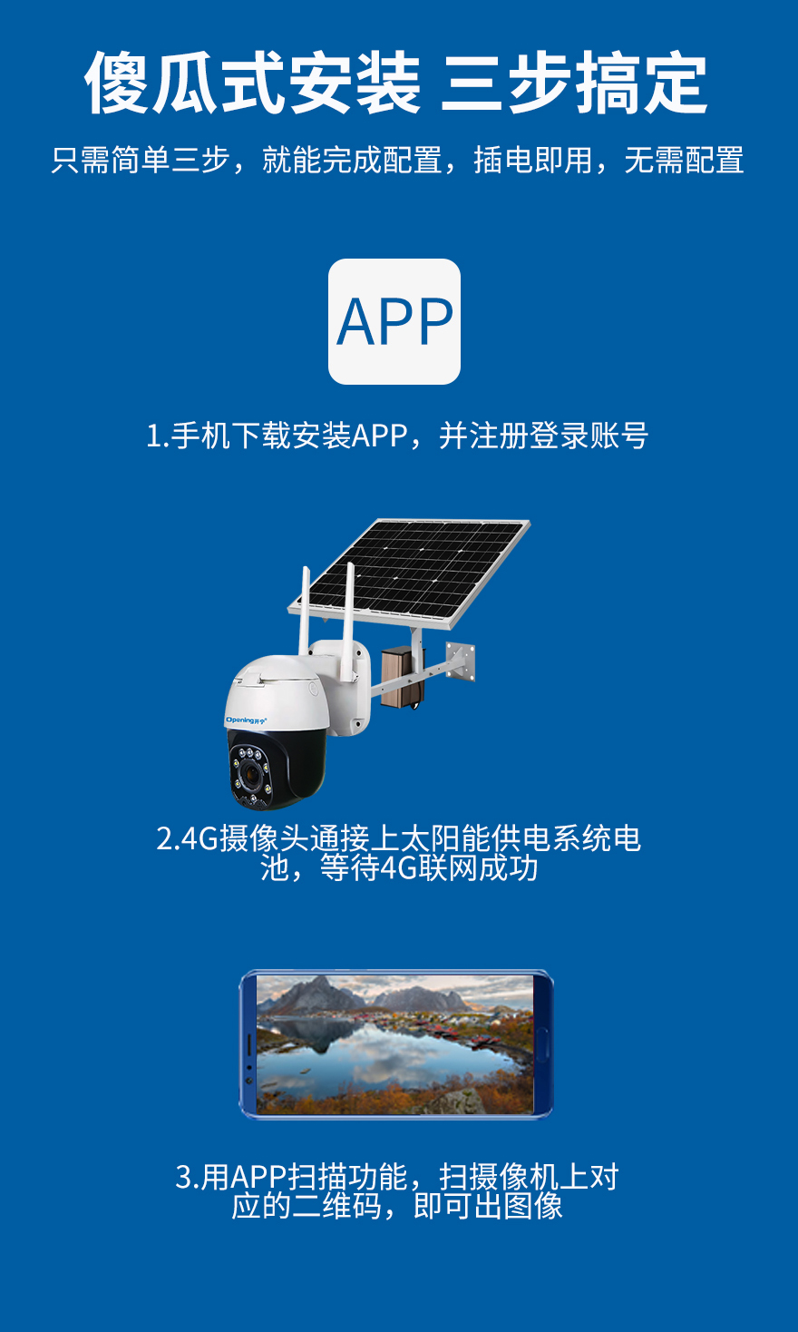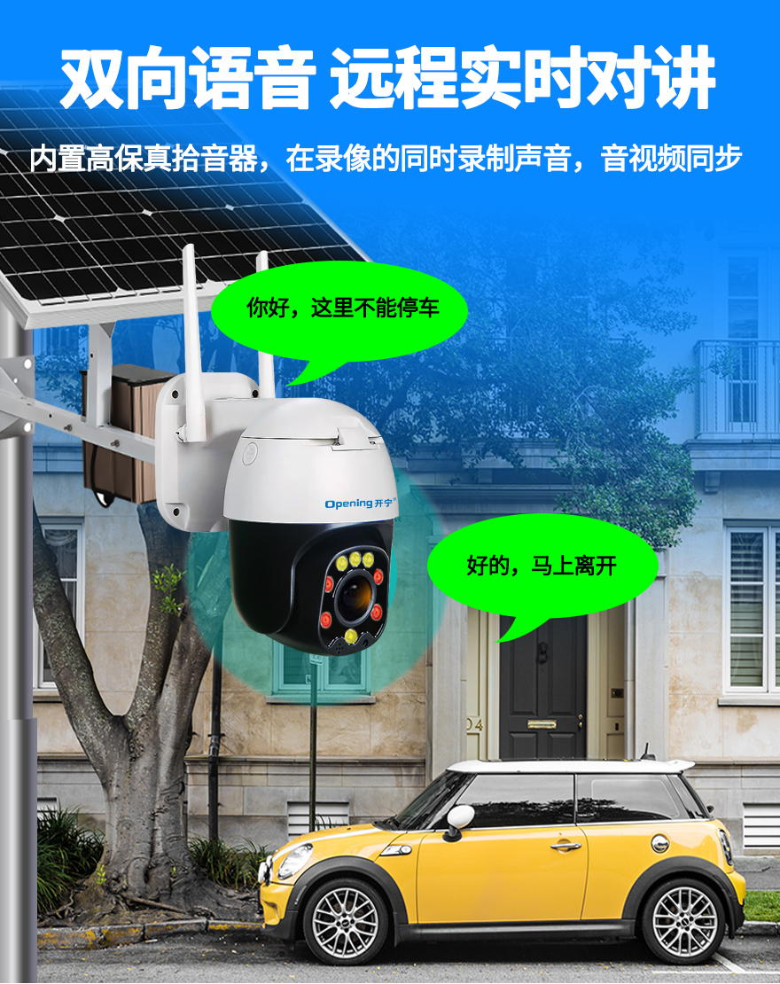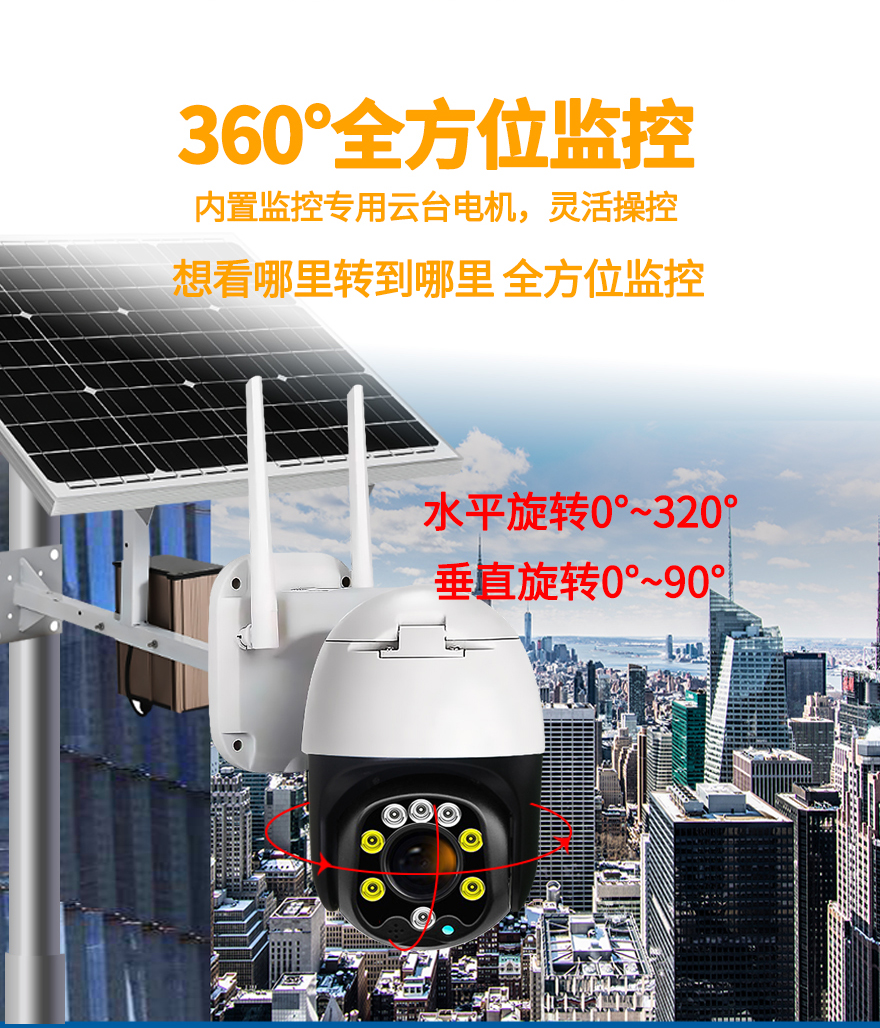 - ★這是一款開寧4G無線太陽能供電監(jiān)控系統(tǒng),一個機器就相當(dāng)于一套監(jiān)控系統(tǒng),無電無網(wǎng)也可以使用;
