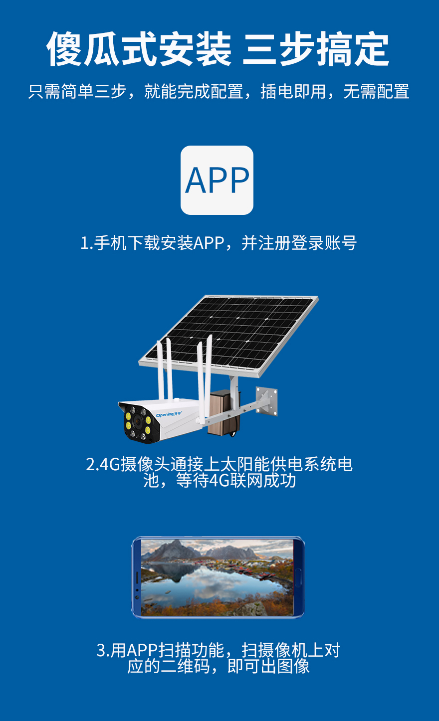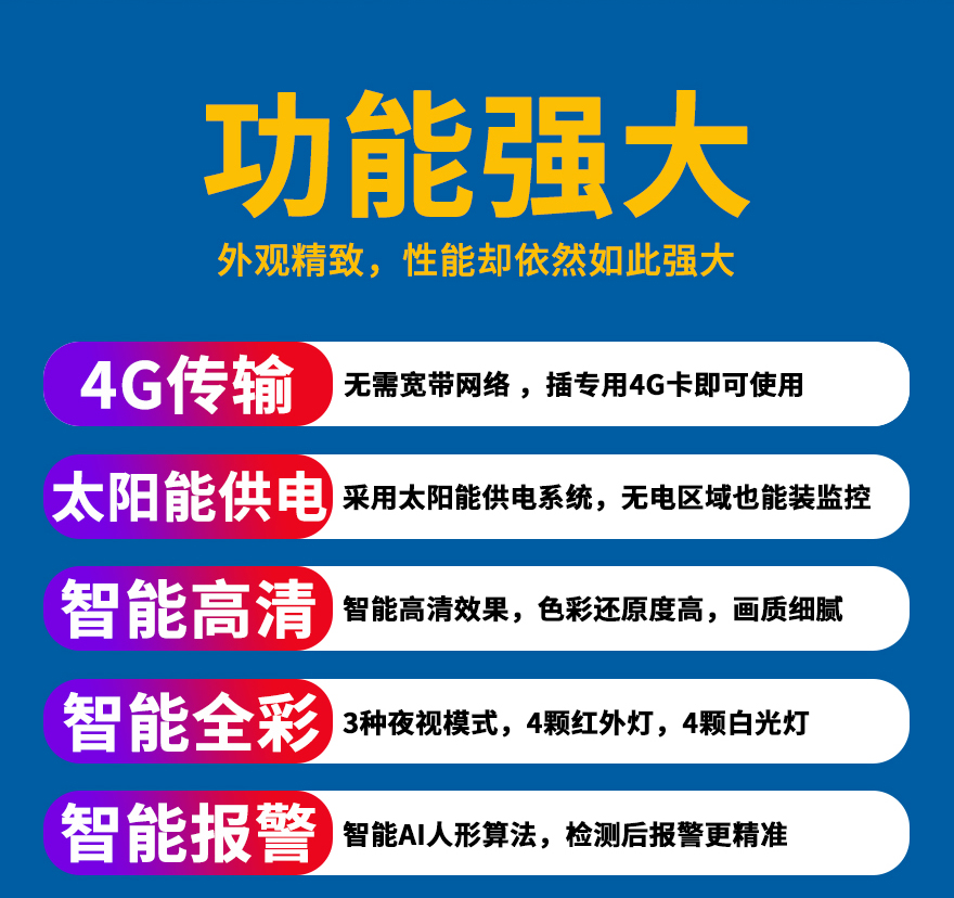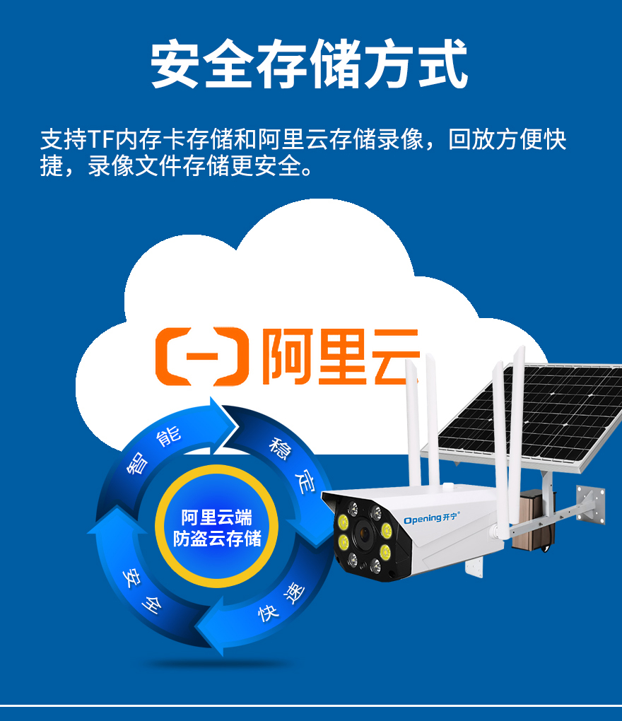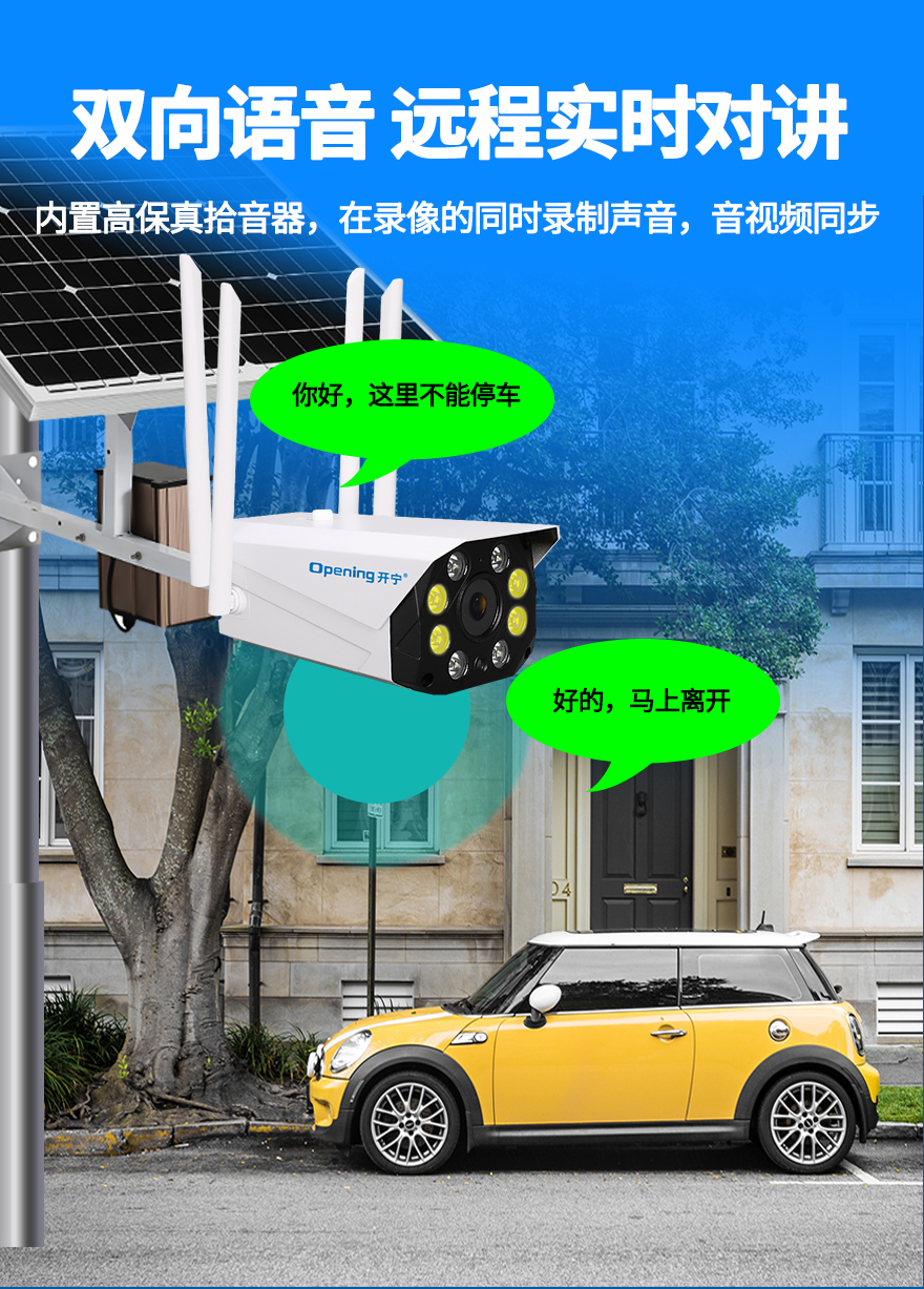 - ★這是一款開寧4G無線太陽能供電監(jiān)控系統(tǒng),一個(gè)機(jī)器就相當(dāng)于一套監(jiān)控系統(tǒng),無電無網(wǎng)也可以使用;