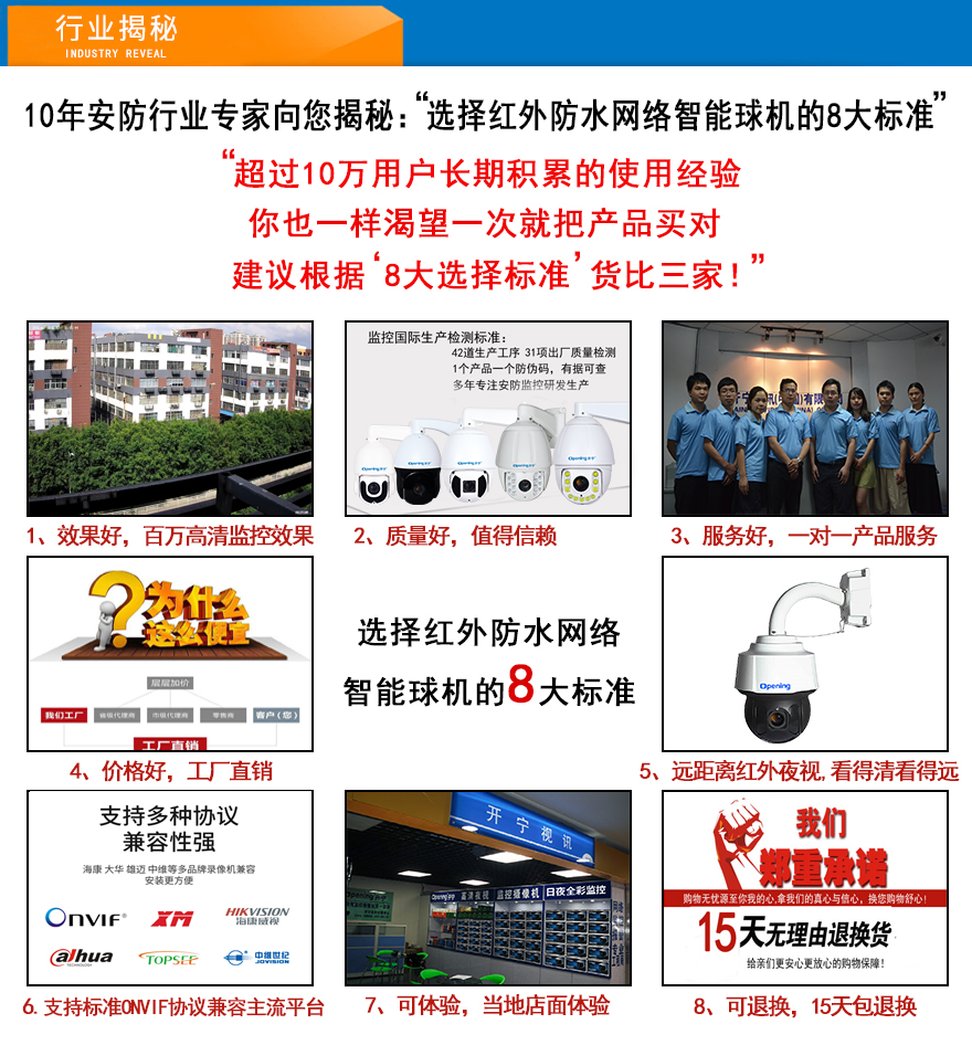 ★強(qiáng)大兼容性,支持標(biāo)準(zhǔn)的ONVIF,無(wú)縫對(duì)接海康,大華,雄邁CMS,美電威視AEVISION,Milestone等平臺(tái),支持RTSP實(shí)時(shí)流協(xié)議,支持大華、海康3D控制協(xié)議;