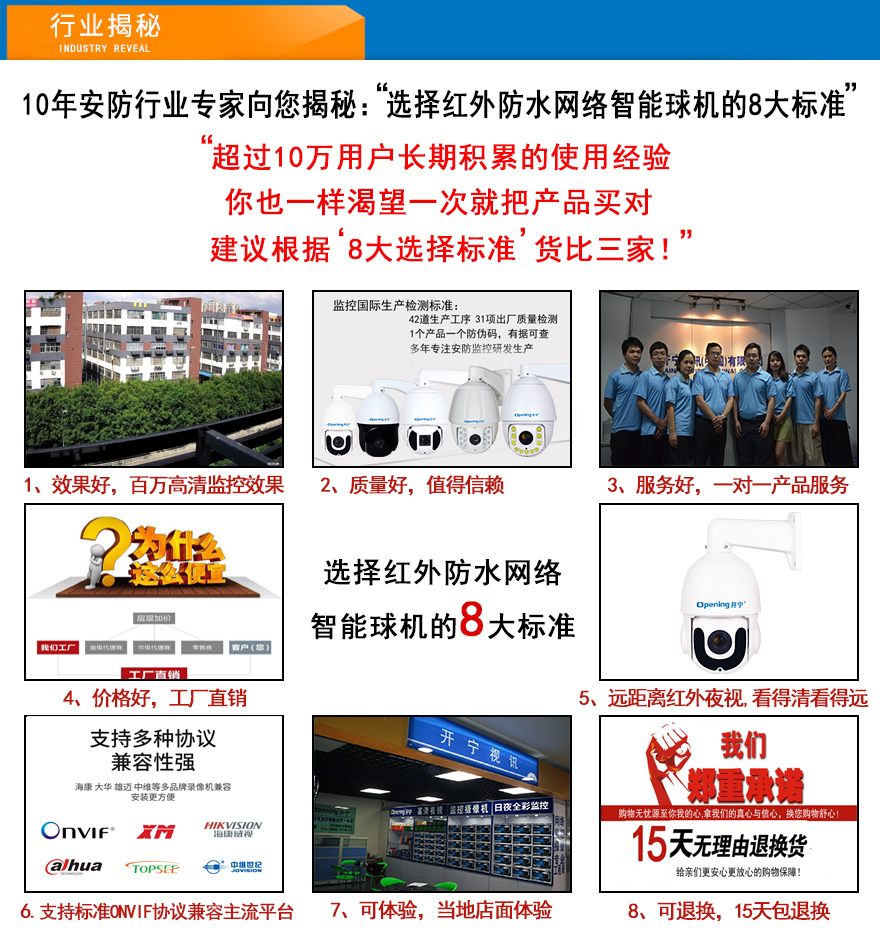 ★強(qiáng)大兼容性,支持標(biāo)準(zhǔn)的ONVIF,無縫對(duì)接??担笕A,雄邁CMS,美電威視AEVISION,Milestone等平臺(tái),支持RTSP實(shí)時(shí)流協(xié)議,支持大華、海康3D控制協(xié)議;