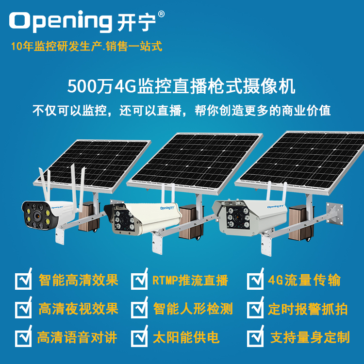 2、內(nèi)置智能4G模塊,沒有寬帶網(wǎng)絡的地方也能實現(xiàn)實時監(jiān)控直播;另外選配太陽能供電系統(tǒng)可實現(xiàn)無電無網(wǎng)實時監(jiān)控直播;