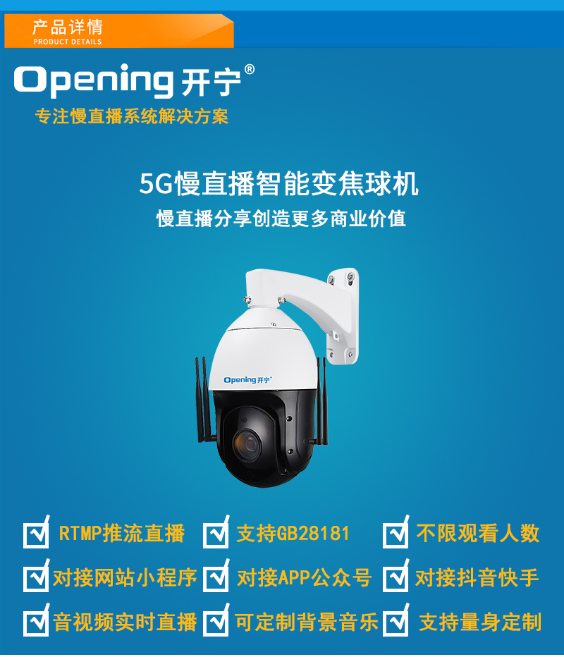 2、內(nèi)置智能5G模塊,沒(méi)有寬帶網(wǎng)絡(luò)的地方也能實(shí)現(xiàn)實(shí)時(shí)監(jiān)控直播;另外選配太陽(yáng)能供電系統(tǒng)可實(shí)現(xiàn)無(wú)電無(wú)網(wǎng)實(shí)時(shí)監(jiān)控直播;
