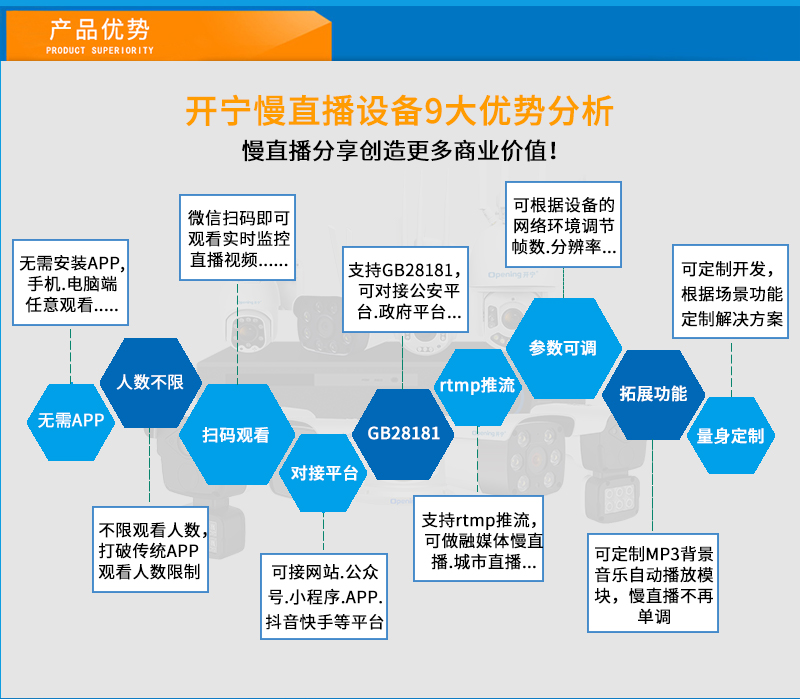 3.智能高清、全網(wǎng)通、低碼流、低照度、低功耗。