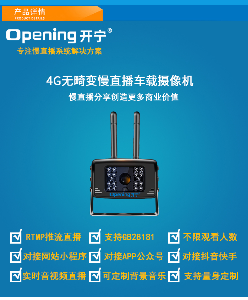 - 1、300萬/500萬無畸變有線/4G慢直播車載攝像機(jī),一個(gè)攝像機(jī)就是一套無畸變慢直播系統(tǒng);