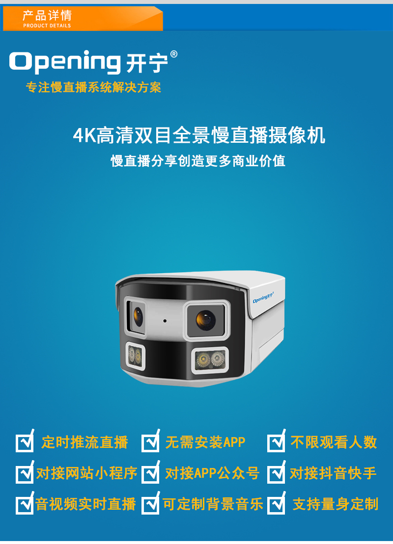 - 1、800萬(wàn)雙目拼接雙光槍式慢直播攝像機(jī),1個(gè)攝像機(jī)就是一套慢直播系統(tǒng);雙目拼接180度超廣角;