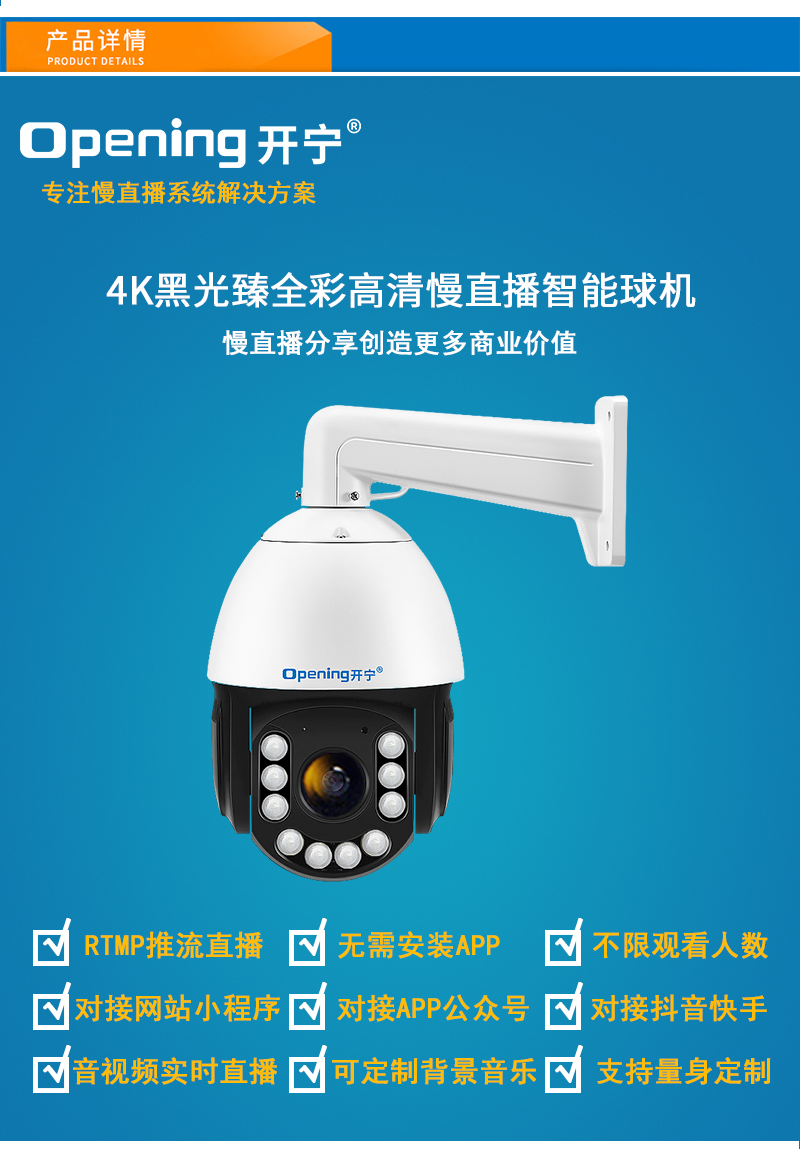 當(dāng)前位置:開寧首頁 > > 開寧6寸4K黑光臻全彩慢直播智能球機